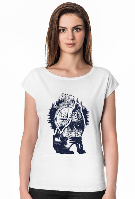 Damska koszulka o luźnym kroju „oversize” z dekoltem w łódeczkę. Zamówienia są wykonywane na koszulkach bardzo dobrej jakości, materiale grubym i trwałym.