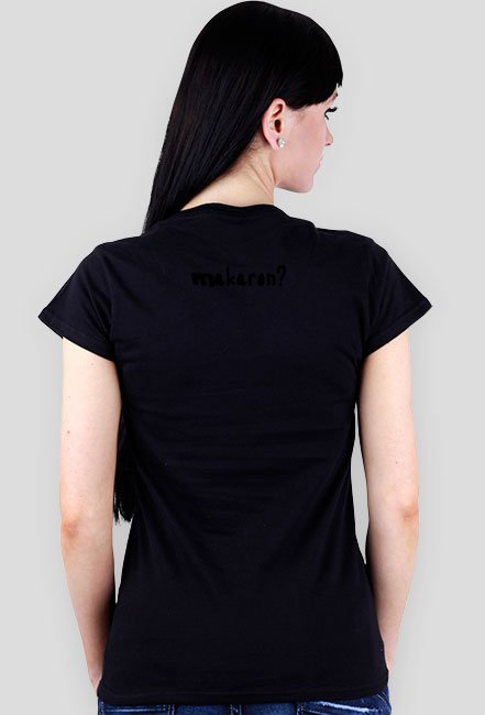 Koszulka damska na kturej sprzodu widnieje napis I like makaron a ztylu ma napis makaron