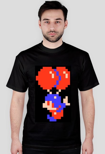Model ma na sobie koszulkę w rozmiarze M. Maksymalne wymiary nadruku to 30cm (szerokość)