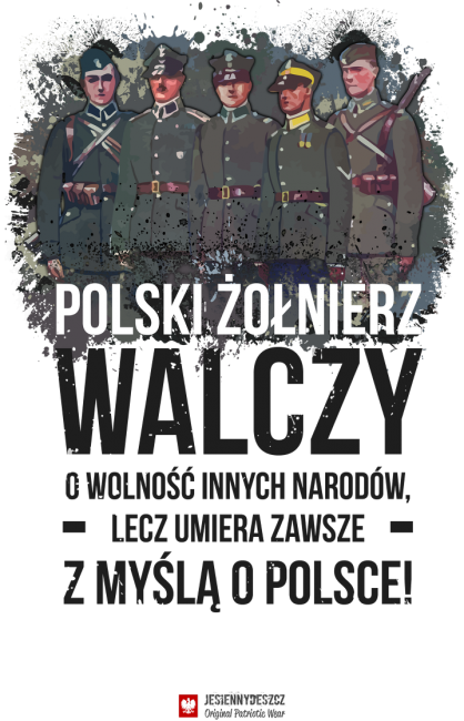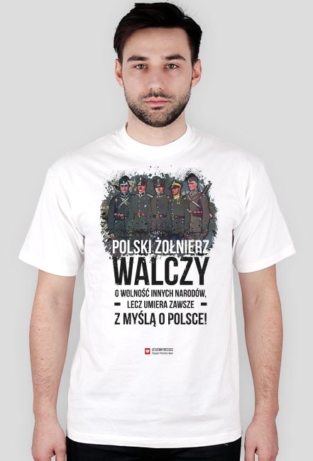 Koszulka z niezwykle wymownym napisem "Polski żołnierz walczy o wolność innych narodów, lecz umiera zawsze z myślą o Polsce" jest wyrazem pamięci i szacunku wobec wszystkich polskich żołnierzy, którzy na przestrzeni dziejów podejmowali walkę w obronie ojczyzny i jej niepodległości, ale również wolności innych narodów. Walkę pełną odwagi, czasami wręcz heroizmu. Nie zawsze przynoszącą zamierzony efekt , niekiedy zupełnie beznadziejną. Polski żołnierz nigdy nie szczędził jednak swojej krwi.