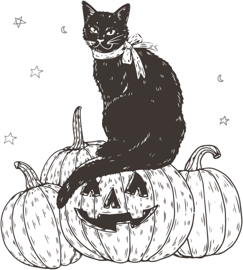 Miau! Ten carny kot siedzący na dniach czeka właśnie na Ciebie aby rozpocząć wspólnej świętowanie halloween.