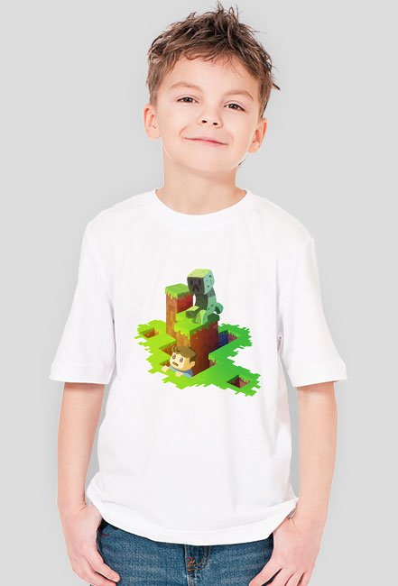 Koszulka z wzorem inspirowanym postaciami z popularnej gry Miecraft.