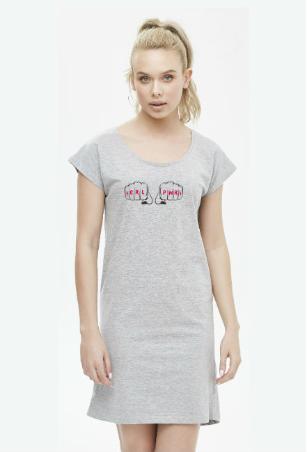 Materiał to miękki i gładki single jersey typu slub. Sukienka wykonana jest z bawełny półczesankowej Ring Spun. Ten typ bawełny charakteryzuje się tym, że do jej przędzenia wybiera się surowiec wyłącznie wysokogatunkowy o długich, cienkich oraz bardzo wytrzymałych włóknach.