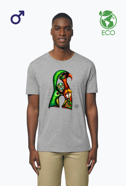 Męska koszulka z linii Eco Aware. Posiada wszywane rękawy, ściągacz na kołnierzyku oraz taśmę wzmacniającą na karku. Rękawy i dół z wąskim podwójnym ściegiem. Materiał: single jersey: 100% organiczna bawełna czesana ring spun. Gramatura 150 g/m². Posiada certyfikaty: GOTS (Global Organic Textile Standard), GRS, OCS, OEKO-TEX Standard 100, Fair Wear.