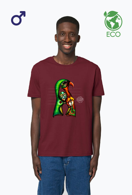 Męska koszulka z linii Eco Aware. Posiada wszywane rękawy, ściągacz na kołnierzyku oraz taśmę wzmacniającą na karku. Rękawy i dół z wąskim podwójnym ściegiem. Materiał: single jersey: 100% organiczna bawełna czesana ring spun. Gramatura 150 g/m². Posiada certyfikaty: GOTS (Global Organic Textile Standard), GRS, OCS, OEKO-TEX Standard 100, Fair Wear.