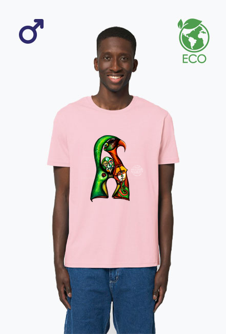 Męska koszulka z linii Eco Aware. Posiada wszywane rękawy, ściągacz na kołnierzyku oraz taśmę wzmacniającą na karku. Rękawy i dół z wąskim podwójnym ściegiem. Materiał: single jersey: 100% organiczna bawełna czesana ring spun. Gramatura 150 g/m². Posiada certyfikaty: GOTS (Global Organic Textile Standard), GRS, OCS, OEKO-TEX Standard 100, Fair Wear.