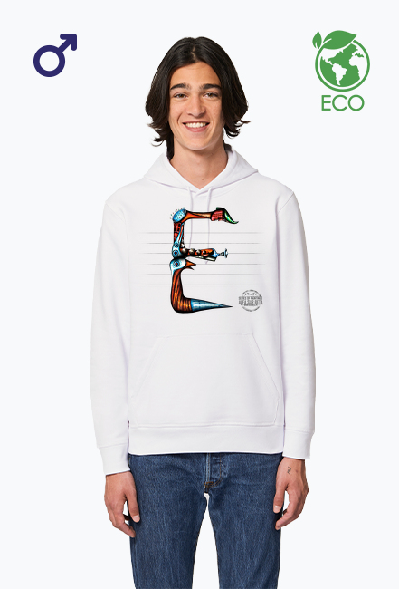 Bluza z kapturem męska z linii Eco Awar. Posiada kaptur z podszewką z pojedynczego dżerseju, kieszeń kangurkę, wszywane rękawy oraz ściągacze przy rękawach i u dołu. Skład materiałowy: 85% organiczna bawełna czesana ring spun, 15% poliester pochodzący z recyklingu. Gramatura 280 g/m². Posiada certyfikaty: GOTS (Global Organic Textile Standard), GRS, OCS, OEKO-TEX Standard 100, Fair Wear.