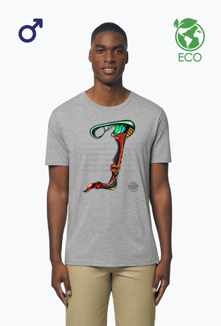 Męska koszulka z linii Eco Aware. Posiada wszywane rękawy, ściągacz na kołnierzyku oraz taśmę wzmacniającą na karku. Rękawy i dół z wąskim podwójnym ściegiem. Materiał: single jersey: 100% organiczna bawełna czesana ring spun. Gramatura 150 g/m². Posiada certyfikaty: GOTS (Global Organic Textile Standard), GRS, OCS, OEKO-TEX Standard 100, Fair Wear.