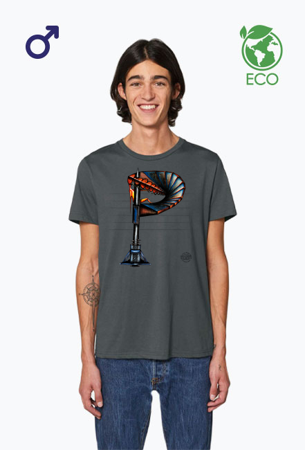 Męska koszulka z linii Eco Aware. Posiada wszywane rękawy, ściągacz na kołnierzyku oraz taśmę wzmacniającą na karku. Rękawy i dół z wąskim podwójnym ściegiem. Materiał: single jersey: 100% organiczna bawełna czesana ring spun. Gramatura 150 g/m². Posiada certyfikaty: GOTS (Global Organic Textile Standard), GRS, OCS, OEKO-TEX Standard 100, Fair Wear.