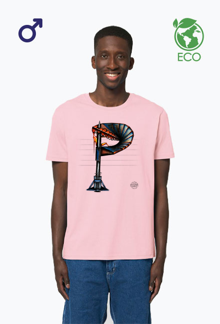 Męska koszulka z linii Eco Aware. Posiada wszywane rękawy, ściągacz na kołnierzyku oraz taśmę wzmacniającą na karku. Rękawy i dół z wąskim podwójnym ściegiem. Materiał: single jersey: 100% organiczna bawełna czesana ring spun. Gramatura 150 g/m². Posiada certyfikaty: GOTS (Global Organic Textile Standard), GRS, OCS, OEKO-TEX Standard 100, Fair Wear.