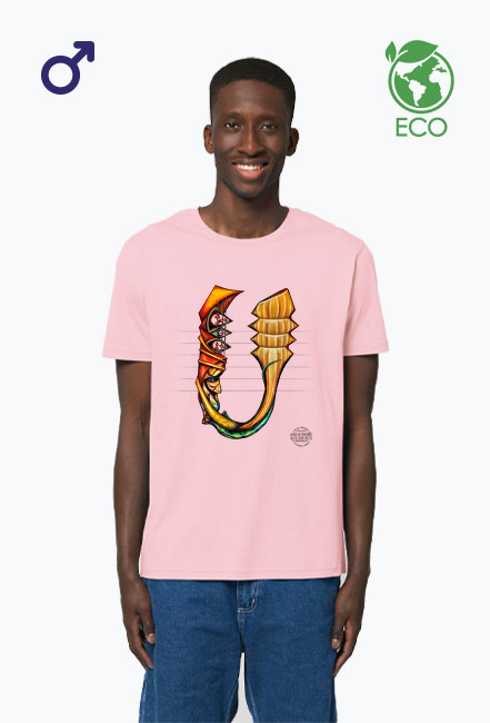 Męska koszulka z linii Eco Aware. Posiada wszywane rękawy, ściągacz na kołnierzyku oraz taśmę wzmacniającą na karku. Rękawy i dół z wąskim podwójnym ściegiem. Materiał: single jersey: 100% organiczna bawełna czesana ring spun. Gramatura 150 g/m². Posiada certyfikaty: GOTS (Global Organic Textile Standard), GRS, OCS, OEKO-TEX Standard 100, Fair Wear.
