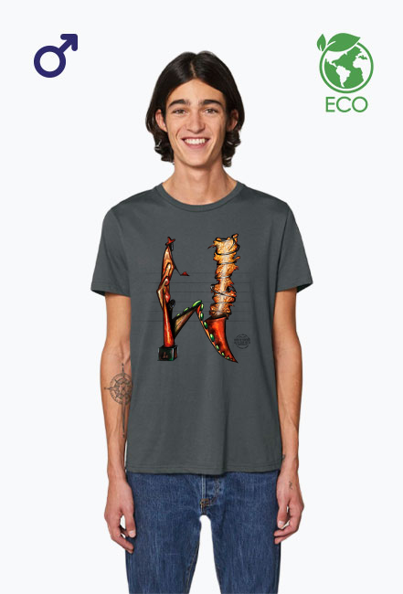 Męska koszulka z linii Eco Aware. Posiada wszywane rękawy, ściągacz na kołnierzyku oraz taśmę wzmacniającą na karku. Rękawy i dół z wąskim podwójnym ściegiem. Materiał: single jersey: 100% organiczna bawełna czesana ring spun. Gramatura 150 g/m². Posiada certyfikaty: GOTS (Global Organic Textile Standard), GRS, OCS, OEKO-TEX Standard 100, Fair Wear.