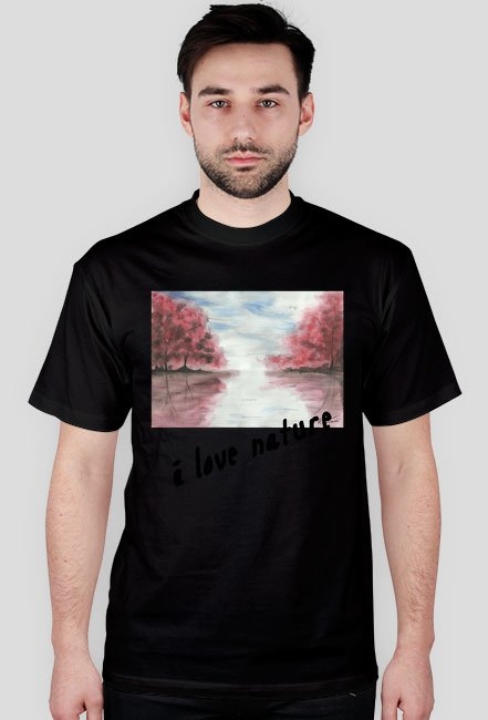 Model ma na sobie koszulkę w rozmiarze M. Maksymalne wymiary nadruku to 30cm (szerokość)