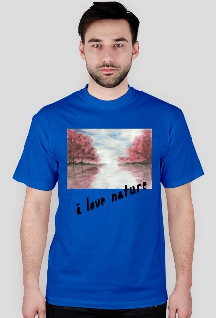 Model ma na sobie koszulkę w rozmiarze M. Maksymalne wymiary nadruku to 30cm (szerokość)