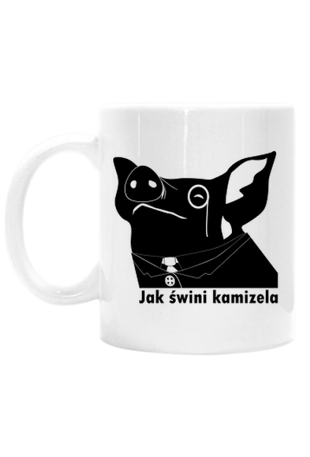 Kubek z czarnym wariantem logo "Jak Świni Kamizela".