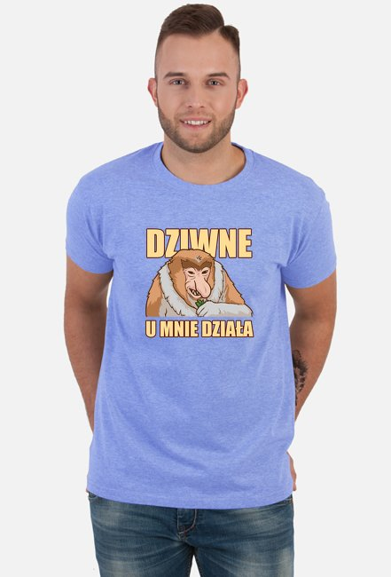 Koszulka z napisem "Dziwne u mnie działa" oraz wizerunkiem wrednego somsiada / typowego polaka.