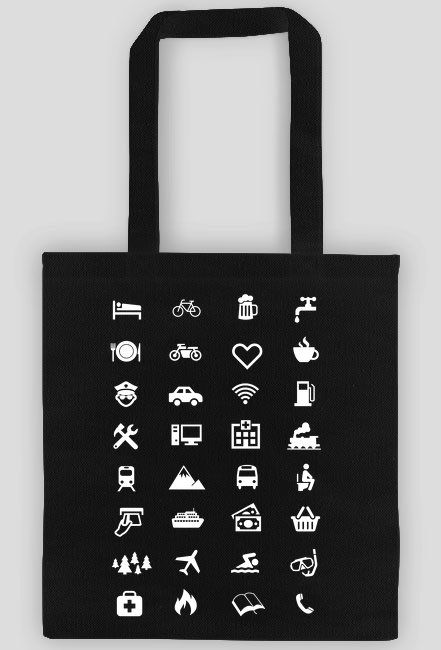 Podróżnicza torba z 34 ikonkami dzięki którym, porozumiesz się w każdym kraju.