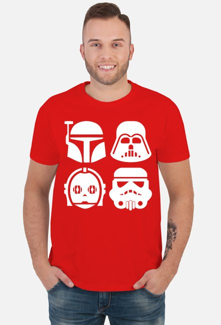 Koszulka Star Wars - Gwiezdne wojny - 4 postacie: Boba Fett, Darth Vader, C3PO, szturmowiec - koszulka męska, biały nadruk