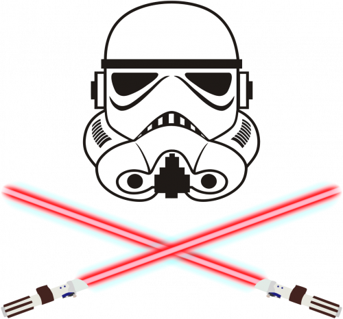 Koszulka z hełmem szturmowca (stormtrooper - Gwiezdne wojny) i dwoma skrzyżowanymi ze sobą mieczami świetlnymi