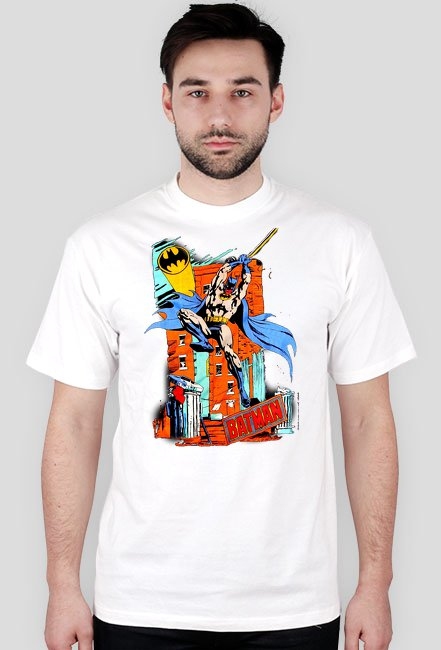 Model ma na sobie koszulkę w rozmiarze M. Maksymalne wymiary nadruku to 30cm (szerokość)