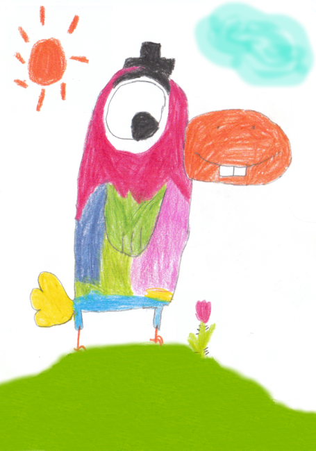 Koszulka z Panem Papugiem narysowanym przez ośmioletniego Mikołaja. Bedzie więcej takich grafik.