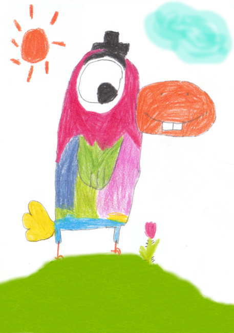 Pierwsza grafika Mikołajka. Pan Papug w całej okazałości.
