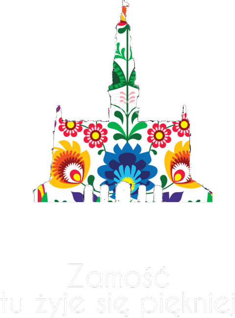Koszulka z konturem zamojskiego ratusza wypełniana elementami folkowymi.