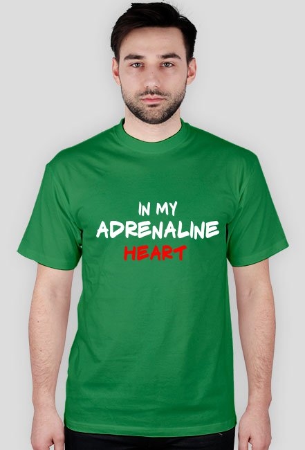 Koszulka męska "In my adrenaline heart" wykonana jest w 100% z bawełny. Idealna dla wszystkich tych którzy lubią przygodę i dreszczyk emocji. Na plecach zamiesczono wzór chemiczny adrenaliny C9H13NO3.