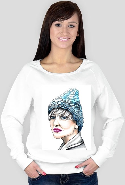Modelka ma na sobie bluzę w rozmiarze S. Maksymalne wymiary nadruku to 30cm (szerokość)