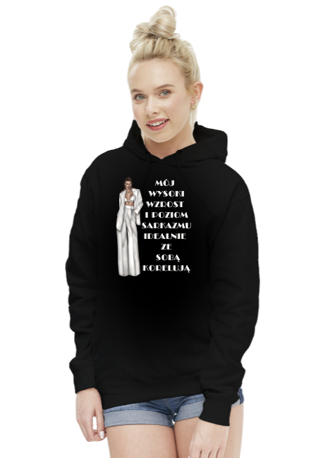 Mój wysoki wzrost i poziom sarkazmu idealnie ze sobą korelują SKU: bluz-z-kapturem-damska_a1ih47lm_4696650