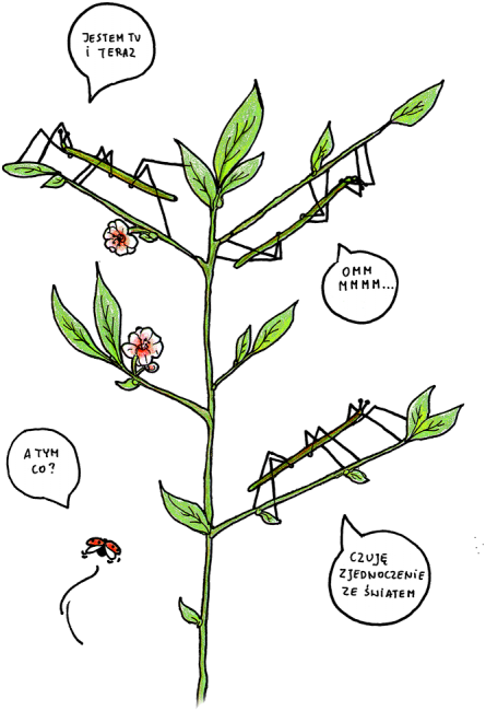 Patyczaki, mistrzowie Zen, poznały czym jest istnienie, nie piją herbaty, nie jedzą mięsa, są wolne od wszelkich potrzeb, medytacja 24/7 dostarcza im energii witalnej. Połączenie ze światem... Tak... Tak...