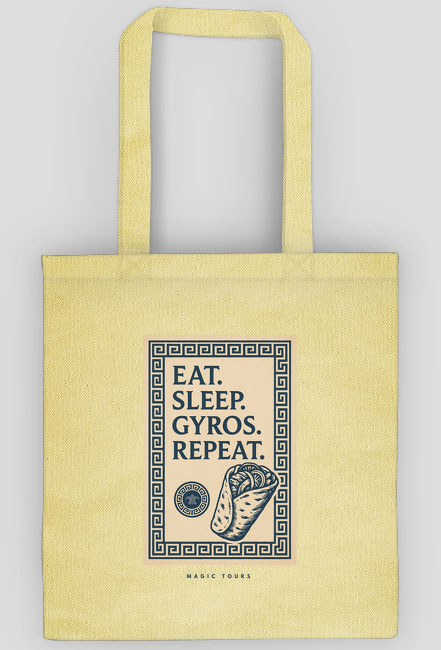 Torba bawełniana z nadrukiem Eat. Sleep. Gyros. Repeat. w greckim stylu.