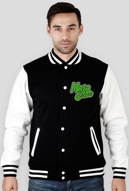 Bluza varsity jacket inspirowana amerykańskim stylem studenckim to opcja dla każdego, kto ceni sobie połączenie funkcjonalności z oryginalnym designem. Materiał, z którego została wykonana to wysokiej jakości bawełna, która ma przewiewną strukturę i daje uczucie miękkości i wygody. Posiada kontrastowe paski na ściągaczach u dołu bluzy i rękawów. Bluza jest zapinana na zatrzaski w kontrastowym kolorze.
