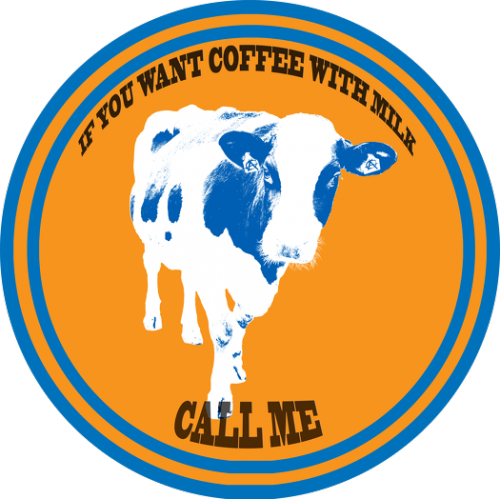 Koszulka z wzorem przedstawiającym krowę reklamująca mleko