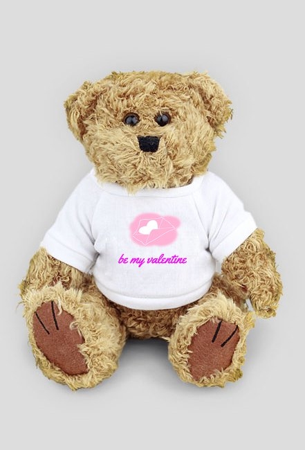 Misiu przytulanka w koszulce z nadrukiem listu i napisem "Be my Valentine".