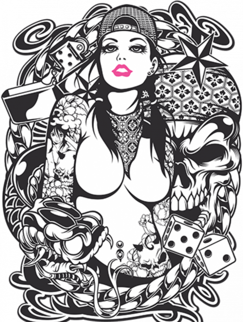 Koszulka Rap wzór tatuażu piękna Dziewczyna.