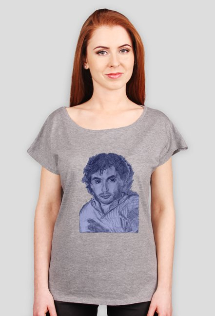Damska koszulka o luźnym kroju „oversize” z dekoltem w łódeczkę. Zamówienia są wykonywane na koszulkach bardzo dobrej jakości, materiale grubym i trwałym.