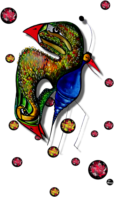 Seria Ptaków/ptaszków surrealistycznych, dla każdego coś się znajdzie...  oryginal grafik: technika mieszana na papierze wykonany przez MICA.