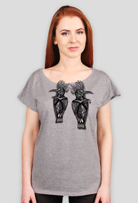 Damska koszulka o luźnym kroju „oversize” z dekoltem w łódeczkę. Zamówienia są wykonywane na koszulkach bardzo dobrej jakości, materiale grubym i trwałym.