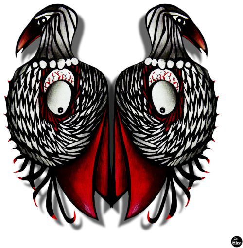 Seria Ptaków/ptaszków surrealistycznych, dla każdego coś się znajdzie...  oryginal grafik: technika mieszana na papierze wykonany przez MICA.