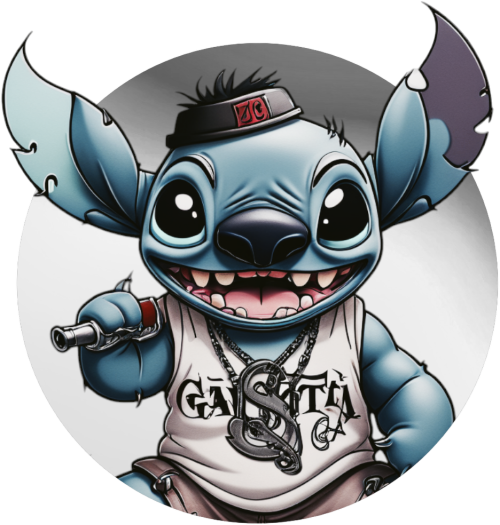 Słodki Stich , czyli pstać znzna z bajek Disney'a w nieco zmienionej formie -bo gangstera.