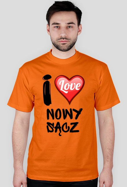 Męska koszulka z nadrukiem I Love Nowy Sącz. T-shirt dostępny w kilku kolorach. Nadruk jednostronny.
