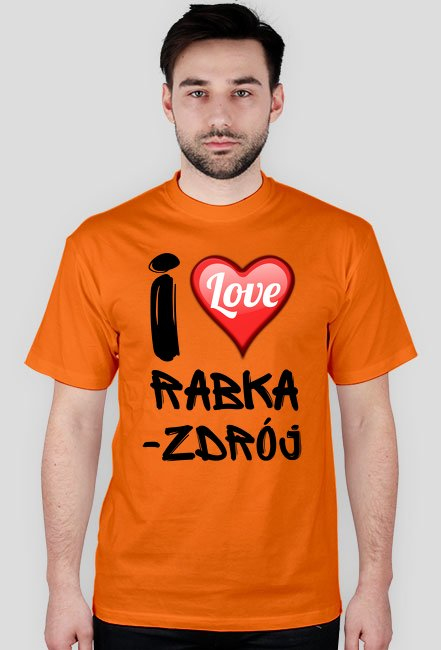 Męska koszulka z nadrukiem I Love Rabka-Zdrój. T-shirt dostępny w kilku kolorach. Nadruk jednostronny.