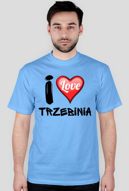 Męska koszulka z nadrukiem I Love Trzebinia. T-shirt dostępny w kilku kolorach. Nadruk jednostronny.