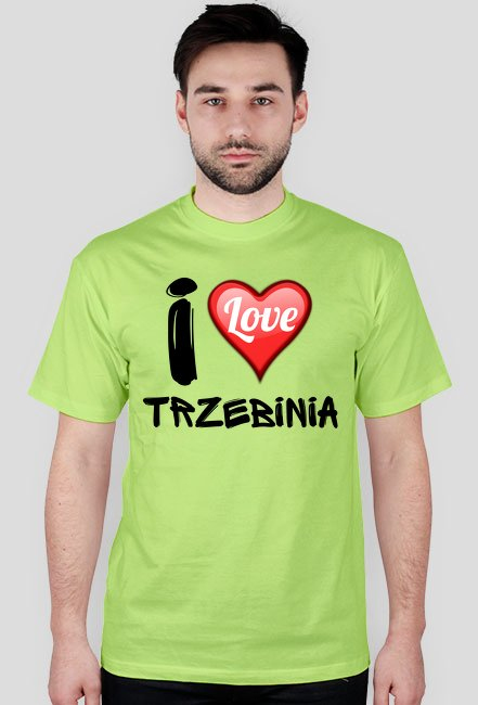 Męska koszulka z nadrukiem I Love Trzebinia. T-shirt dostępny w kilku kolorach. Nadruk jednostronny.