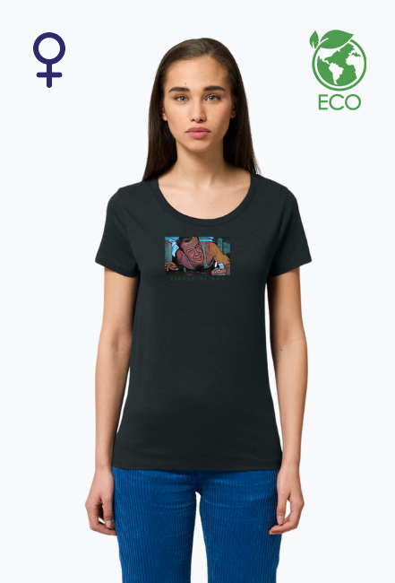 Damska koszulka z linii Eco Aware. Posiada wszywane rękawy, ściągacz na kołnierzyku oraz taśmę wzmacniającą na karku. Rękawy i dół z wąskim podwójnym ściegiem. Materiał: single jersey: 100% organiczna bawełna czesana ring spun. Gramatura 150 g/m². Posiada certyfikaty: GOTS (Global Organic Textile Standard), GRS, OCS, OEKO-TEX Standard 100, Fair Wear.