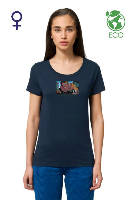 Damska koszulka z linii Eco Aware. Posiada wszywane rękawy, ściągacz na kołnierzyku oraz taśmę wzmacniającą na karku. Rękawy i dół z wąskim podwójnym ściegiem. Materiał: single jersey: 100% organiczna bawełna czesana ring spun. Gramatura 150 g/m². Posiada certyfikaty: GOTS (Global Organic Textile Standard), GRS, OCS, OEKO-TEX Standard 100, Fair Wear.