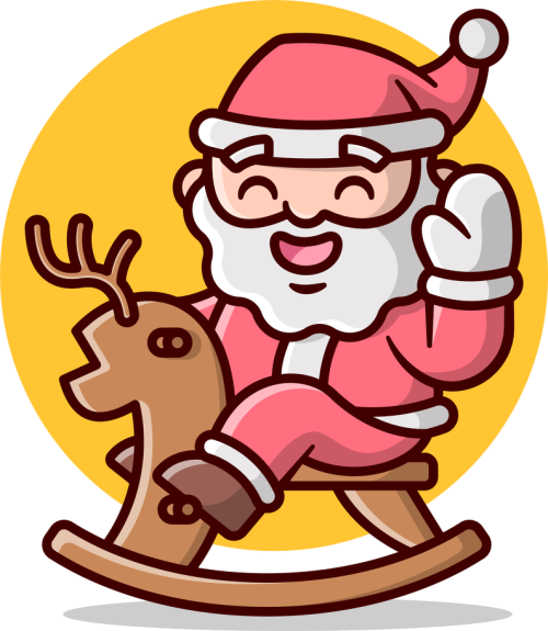 Świąteczny motyw ze Świętym Mikołajem na bujanym reniferze. Idealny dla każdego na prezent / upominek.