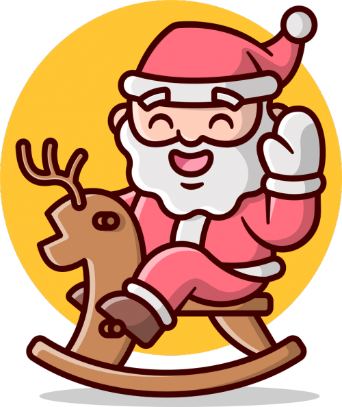 Świąteczny motyw ze Świętym Mikołajem na bujanym reniferze. Idealny dla każdego na prezent / upominek.