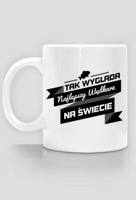 Kubek na prezent dla wędkarza z napisem "Tak wygląda najlepszy wędkarz na świecie". Jeśli masz ojca, wujka, bądź dziadka, który jest zapalonym fanem wędkarstwa to na pewno ucieszy się z tej kubek.